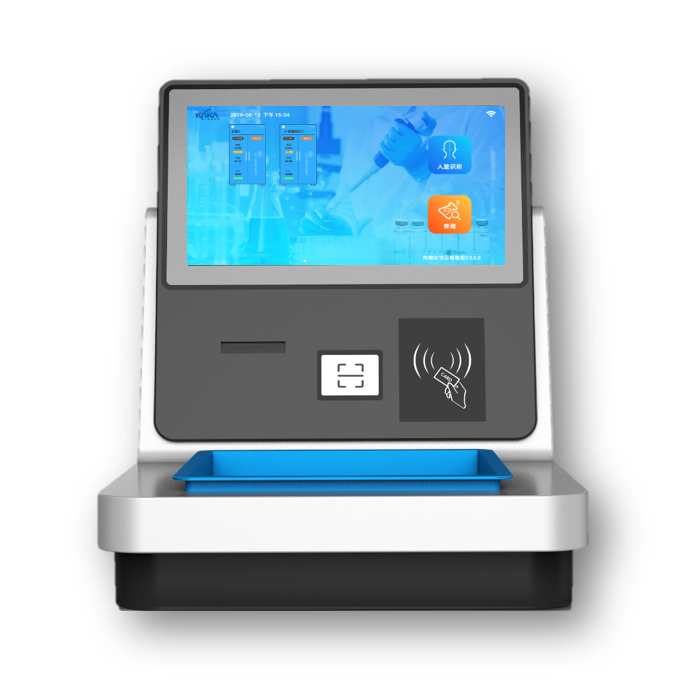 主要用于人員權(quán)限驗(yàn)證登錄智能柜系統(tǒng)(可以通過手機(jī)端系統(tǒng)、一卡通、人臉識別、密碼驗(yàn)證等方式登錄),化學(xué)試劑的稱重、信息識別及數(shù)據(jù)上傳,也承擔(dān)著物品的領(lǐng)取和歸還記錄查詢和展示,支持視頻記錄的查詢和存放。